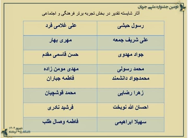 کسب رتبه «شایسته تقدیر» توسط عضو هیئت علمی دانشگاه لرستان در جشنواره ملی جریان
